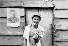 NICARAGUA. Managua. 1985. A man wounded in the Contra War holds...