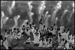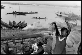 MALI. Mopti. 2002. City dwellers by the river Niger at dawn.