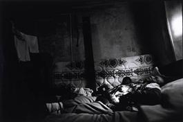 USA. San Francisco. 1999. Homeless man resides at the Mission...