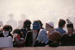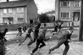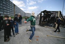 GB. NORTHERN IRELAND. Belfast. 1981. Men hurling rocks and molotov...