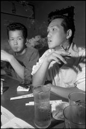 JAPAN. Kamonomiya. 1999. Sasuke & Kenta relaxing during a motorcycle...