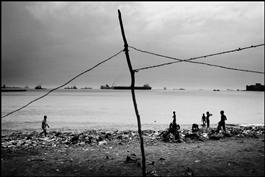 The sea front in Porto Pesquerio, one of Luanda's slums, where...