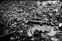 A sewer full of garbage in Porto Pesquiero, a slum in Luanda,...