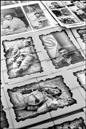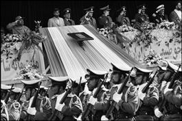 IRAN. Tehran. At the Behesht Zahra cemetery, a portrait of President...