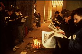 LITHUANIA. Vilnius. Citizens protecting their parliament. 1991....