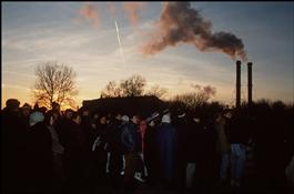 LITHUANIA. 1991. Lithuanians linger around a TV tower that has...