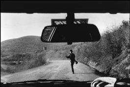 ALBANIA. 1994. Boy trying to get lift in car passing from Greece...