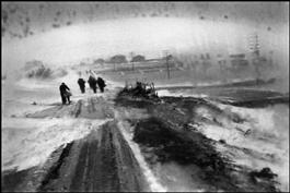 ALBANIA. 1994. Snow blizzard on the road to Korce.