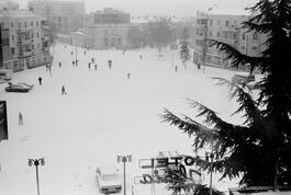 ALBANIA. Korce. 1994. Snowcovered main square.