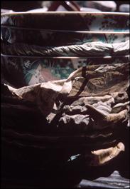 JAPAN. Tokyo. 1996. Traditional sitting pose at the fish market....