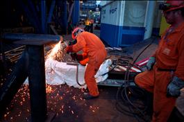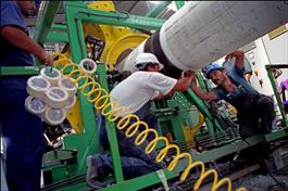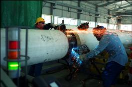 Turkey. Istanbul. Workers at Saipem prepare the huge pipes...