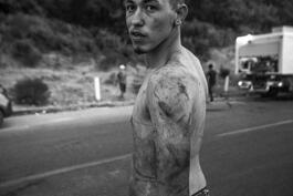 TUNISIA. Jendouba Governorate, Fernanah. 13 August 2021. A firefighter...