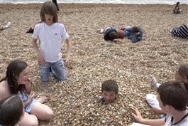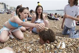 G.B. ENGLAND. Brighton. Adolescents on beach. August 2005.