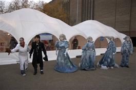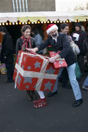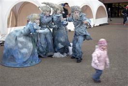 G.B. ENGLAND. London. Southbank of Thames. Visitors mimic street...