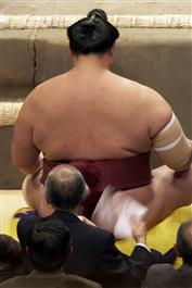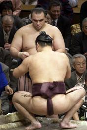 JAPAN. Tokyo. Sumo. Tournament at Kokugikan. Russian Roho attends...