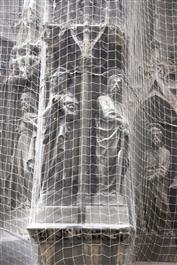 FRANCE. Paris. detail of church sculptures with netting. 2005....