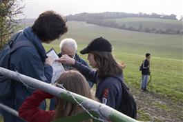 G.B. ENGLAND. Kent. Day out in Kent. Ramblers in churchyard....
