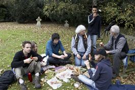 G.B. ENGLAND. Kent. Day out in Kent. Picnic in church yard. November...