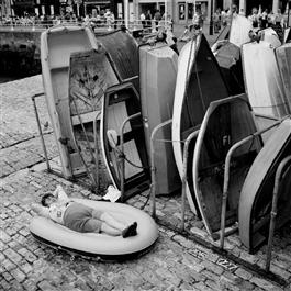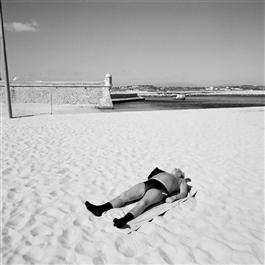 PORTUGAL. Algarve. Lagos. Man sunbathing in socks. 26.3.1994