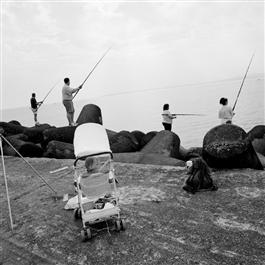 GB. WALES. Port Talbot. Fishing on the sea wall. 19.7.1994