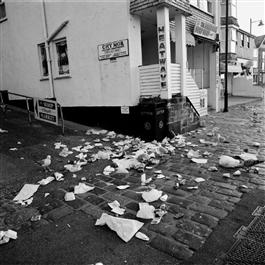 GB. ENGLAND. St Ives. Early Sunday morning at the harbour. Rubbish...