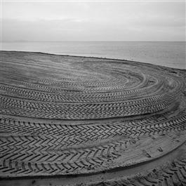 GB. SCOTLAND. Edinburgh. Portobello. Tyre tracks on Portobello...