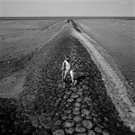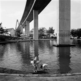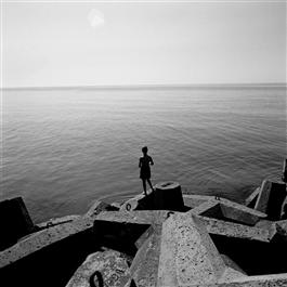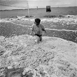 GERMANY. Nordstrand. Boy fishing on the mudflats19.8.1995