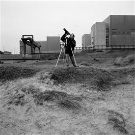 GB. ENGLAND. Suffolk. Sizewell. Birdwatcher outside Sizewell...