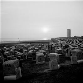 GERMANY. Busum. Beach chairs. Sunset. 22.8.1995