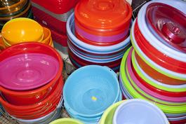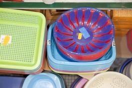 FRANCE. Paris. The Goutte d'Or. Colourful plastic containers....