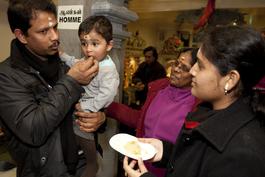FRANCE. Paris. The Goutte d'Or. Family in the temple of Ganesh....