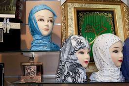 FRANCE. Paris. The Goutte d'Or. Mannequin with scarfs. 2011.