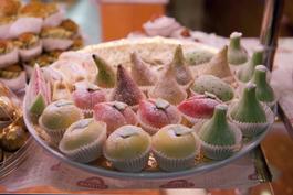 FRANCE. Paris. The Goutte d'Or. Colourful Oriental sweets. 2011....