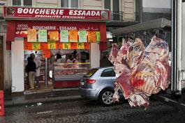 FRANCE. Paris. The Goutte d'Or. Butcher shop. 2011.