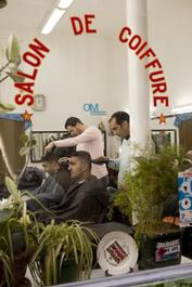FRANCE. Paris. The Goutte d'Or. Gentlemens barber shop. 2011....