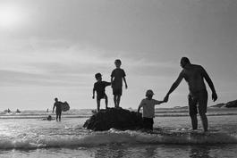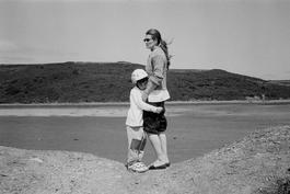 GB. England. Cornwall. Treyarnon Bay. Fiona NAYLOR with her sons...