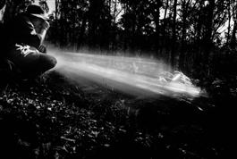 AUSTRALIA. Perth. World Rally Championships. A mechanic shelters...