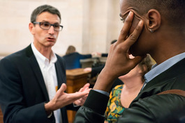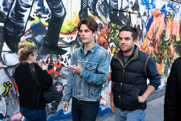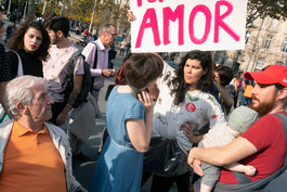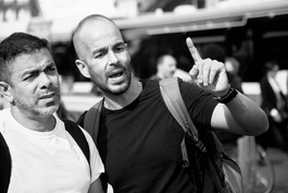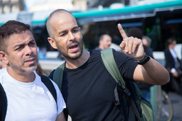 France. Paris. Handshake outside the Place de Clichy metro station....