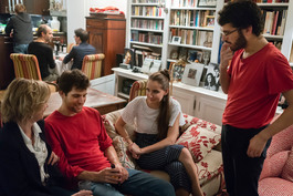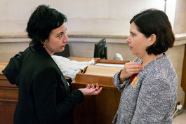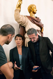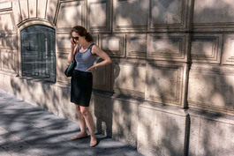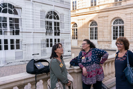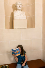 France. Paris. French Senate. Bored girl reads at the Oenovideo...