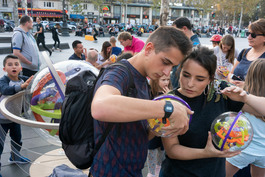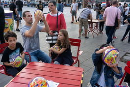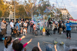 France. Paris. Place de la République. Giant soap bubbles. 2018...