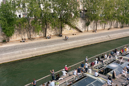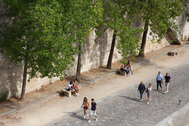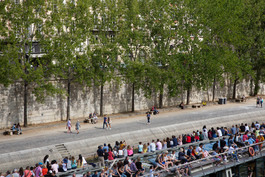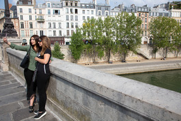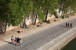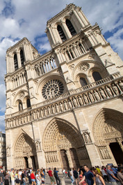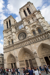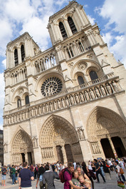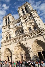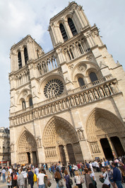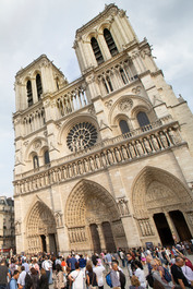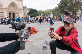 France. Paris. Notre Dame Cathedral. American tourists and pigeons....