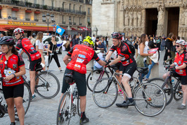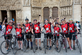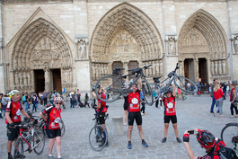 France. Paris. Notre Dame Cathedral. English bicycle riders at...