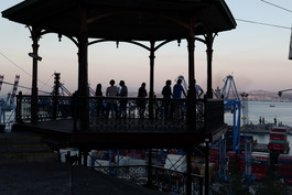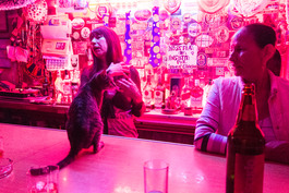 CHILE. Valparaiso. 2017. Nightclub Flamingo Rose in the harbor...