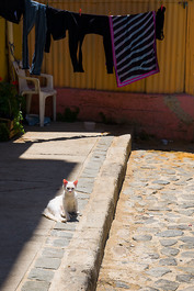 CHILE. Valparaiso. 2017. Cat in the street, Cerro Artilleria....