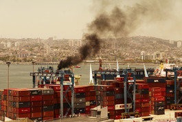 CHILE. Valparaiso. 2017. Barrio Artilleria. View of the container...