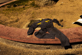 CHILE. Valparaiso. 2017. Barrio Artilleria. Tourist lying in...