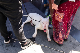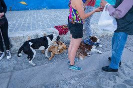 CHILE. Valparaiso. 2017. Barrio Artilleria. Playing street dogs....