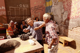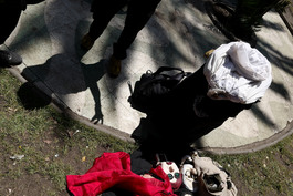 CHILE. Valparaiso. 2017. Plaza Echaurren. Homeless people with...