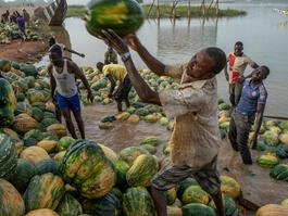 NIGER. Niamey. December 2017. The arrival in Niamey of watermelons...