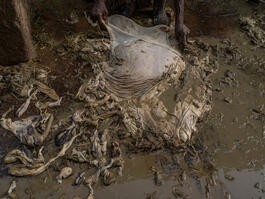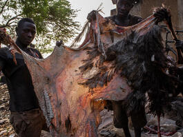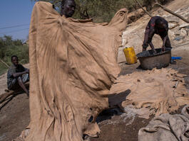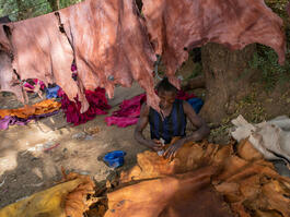 NIGER. Niamey. December 2017. The leather trade on the riverbanks...